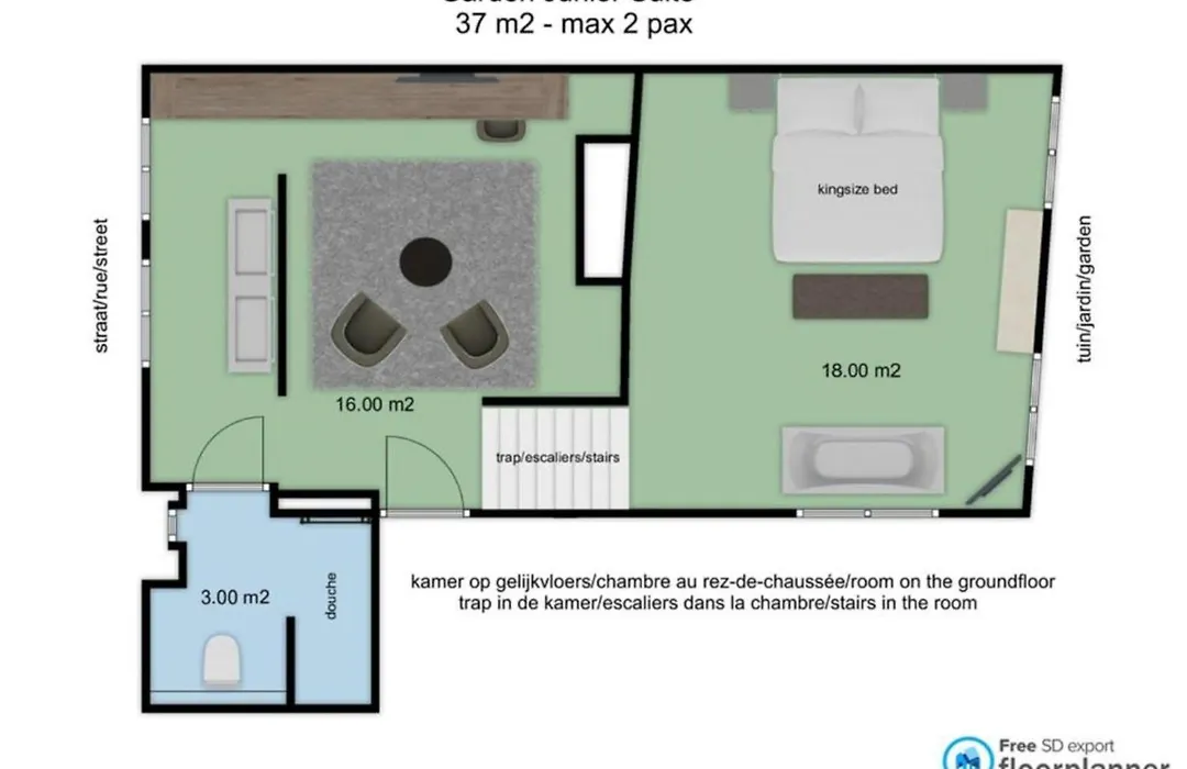 V hotelu je pro hosty restaurace, kde si mohou užít své jídlo. Hosté si mohou užít evropskou kuchyni kuchyni v restauraci 27Bflat Jazz en Blues, která je vzdálena zhruba 250 metrů. Hotel je 20 minut chůze od železniční stanice Bruges.